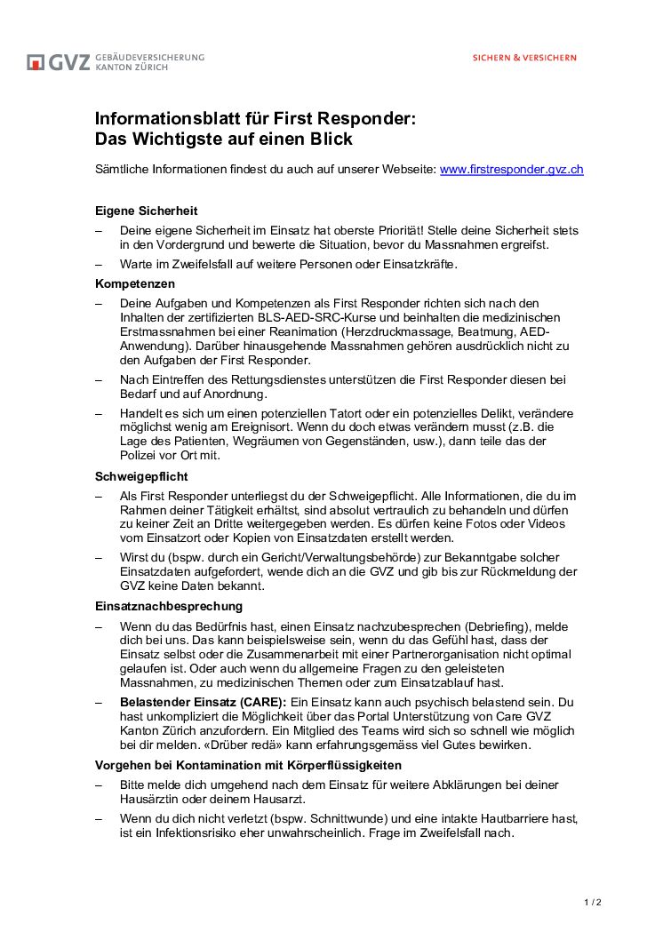 Hier findest du Informationen, nützliche Links und Downloads zum Thema First Responder.